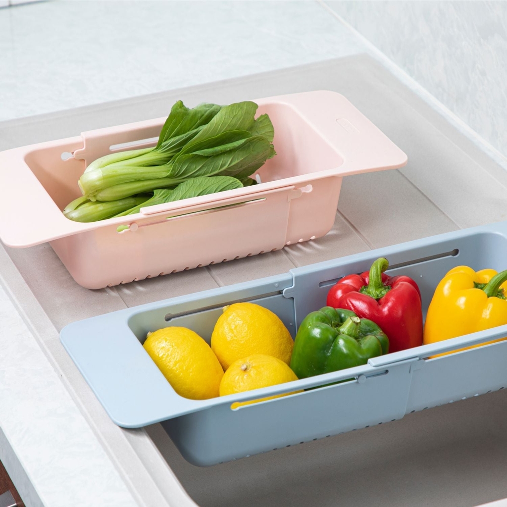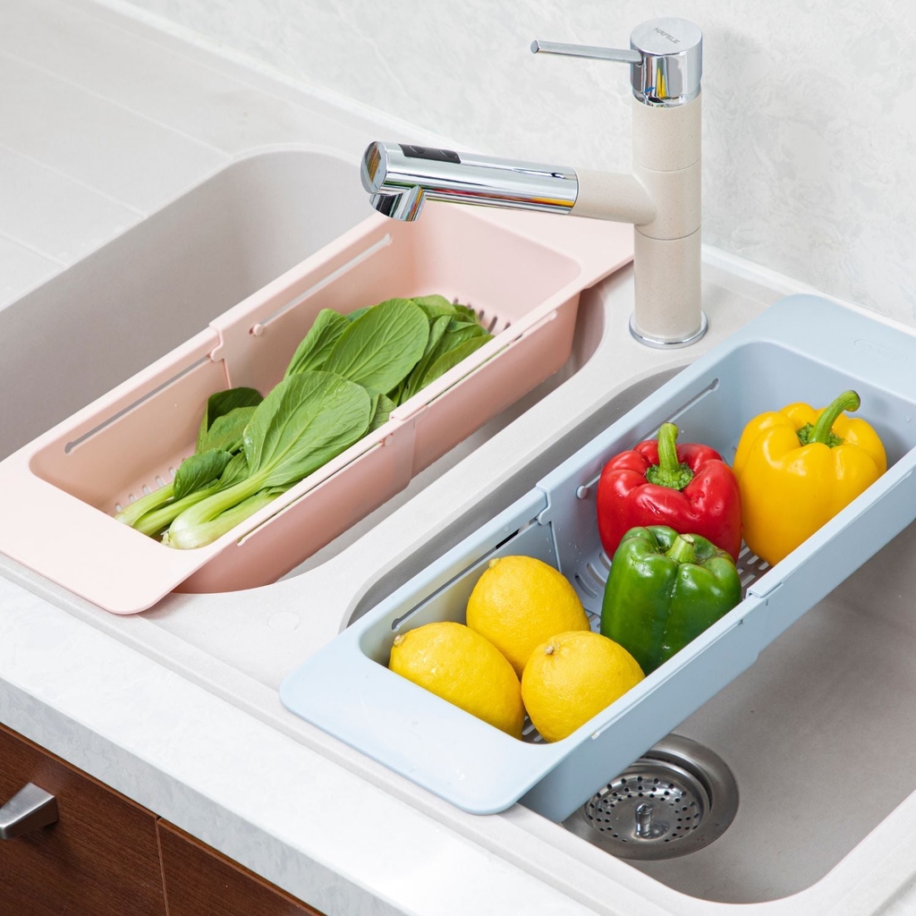 HƯỚNG DẪN SỬ DỤNG: Dùng gác ngang lên chậu rửa bát để đựng các đồ rau, củ, quả, bát đĩa sau khi rửa giúp róc nước và nhanh khô hơn